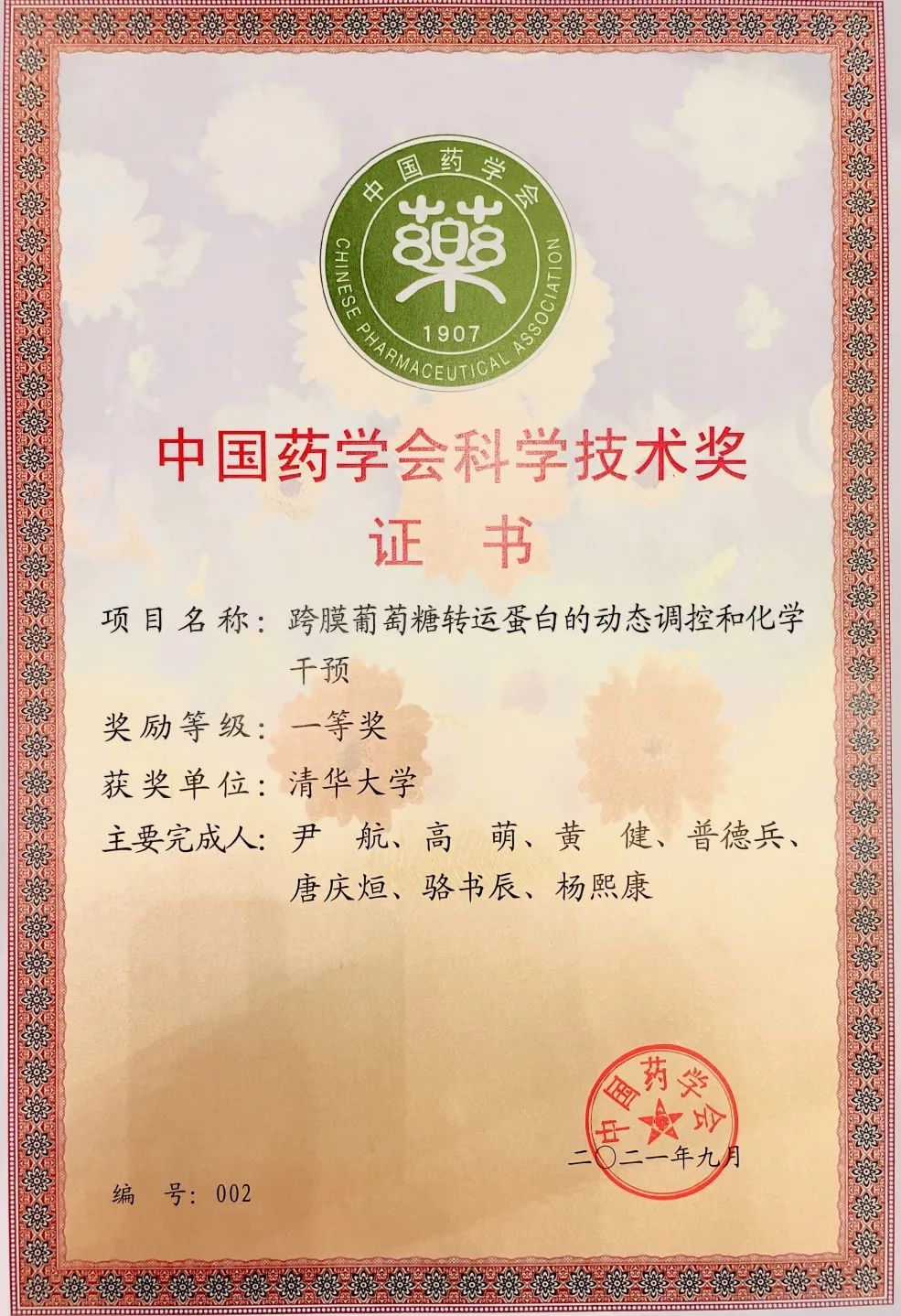 2021年9月18日,中國藥學(xué)大會在浙江省杭州市召開,大會開幕式上宣布頒發(fā)了2021年度中國藥學(xué)會科學(xué)技術(shù)獎。清華大學(xué)藥學(xué)院尹航教授課題組申報(bào)的“跨膜葡萄糖轉(zhuǎn)運(yùn)蛋白的動態(tài)調(diào)控和化學(xué)干預(yù)”成果獲得2021年度中國藥學(xué)會科學(xué)技術(shù)一等獎,獲獎人為藥學(xué)院尹航教授、高萌博士、黃健博士、普德兵博士、唐慶烜、駱書辰和楊熙康。