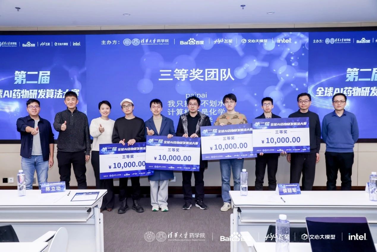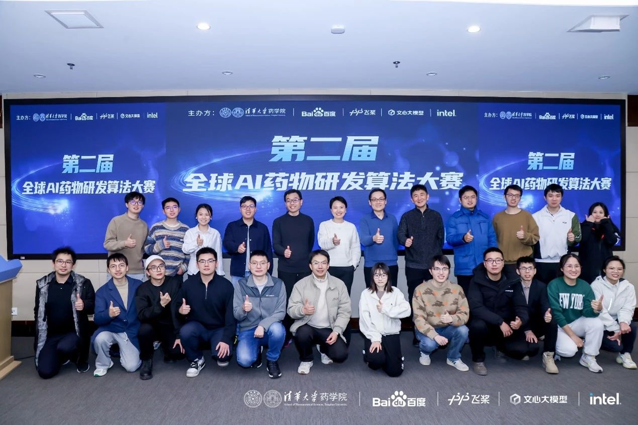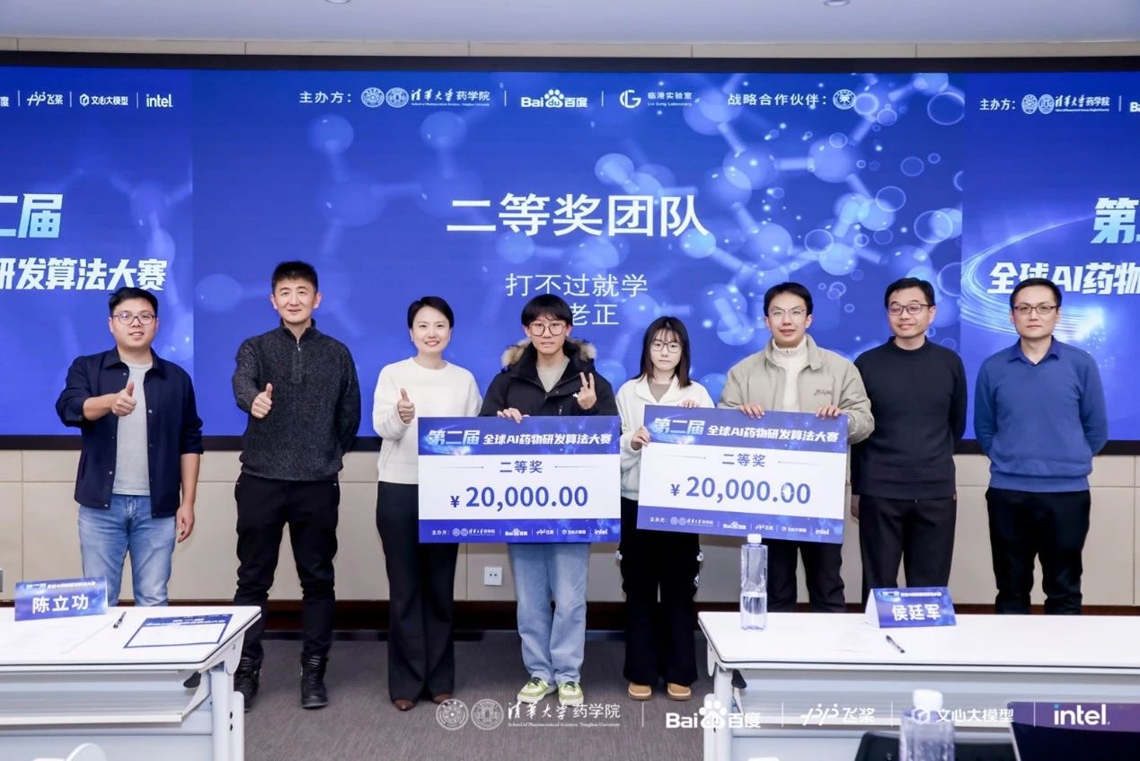 2024年12月22日,第二屆AI藥物研發(fā)算法大賽決賽在清華大學(xué)藥學(xué)院成功舉行。本次比賽由清華大學(xué)藥學(xué)院、百度飛槳、Intel共同發(fā)起,并得到中國藥學(xué)會等單位大力支持,同時邀請到多位AI制藥領(lǐng)域?qū)<覔螌<椅瘑T會委員。清華大學(xué)藥學(xué)院副院長陳立功教授發(fā)表了決賽開幕式致辭,表示希望通過比賽的形式,促進高校、科研院所與企業(yè)在AI+藥學(xué)領(lǐng)域的合作與發(fā)展,解決領(lǐng)域的難題,同時能夠在這個過程中,孕育更多AI與生物醫(yī)藥交叉學(xué)科的人才。北京大學(xué)定量生物學(xué)中心裴劍鋒、清華大學(xué)智能產(chǎn)業(yè)研究院蘭艷艷、中國科學(xué)院上海藥物研究所鄭明月、加拿大魁北克省人工智能研究中心唐建、浙江大學(xué)藥學(xué)院侯廷軍、清華大學(xué)藥學(xué)院田博學(xué),共同擔任本次決賽評委并出席了頒獎典禮。此外,百度飛槳教育生態(tài)運營負責(zé)人錢芳女士以及飛槳螺旋槳PaddleHelix產(chǎn)品負責(zé)人張肖男女士作為嘉賓出席了本次比賽。