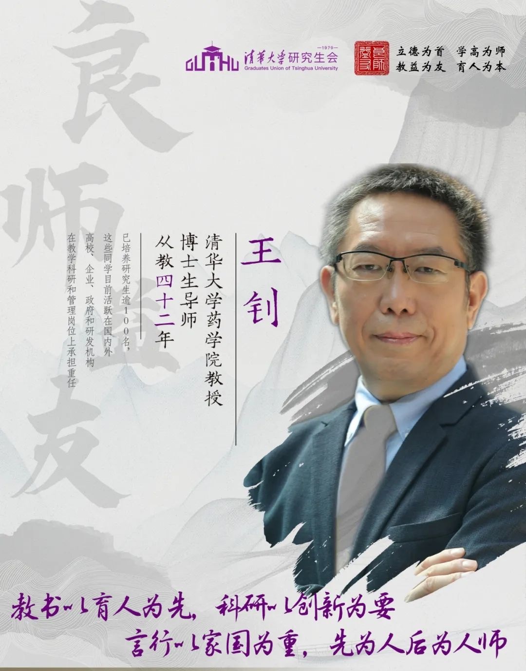 王釗,清華大學(xué)藥學(xué)院教授,博士生導(dǎo)師,從教 42 年。王釗為 1977 級大學(xué)生,學(xué)習(xí)臨床醫(yī)學(xué)并獲醫(yī)學(xué)學(xué)士學(xué)位后入職從教,后留學(xué)海外獲藥學(xué)博士學(xué)位并在海外留校任教。1998 年作為人才引進到清華大學(xué)生物系任教,之后參與創(chuàng)建清華大學(xué)醫(yī)學(xué)院、清華大學(xué)藥學(xué)院并任教至今。期間教授過本科生和研究生多門課程,如分子生物學(xué)、細(xì)胞凋亡的機制、生物藥學(xué)工程前沿、藥理學(xué)等,并在清華大學(xué)首創(chuàng)了《衰老生物學(xué)》本科課程。