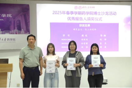 在第三期沙龍中途,學(xué)院舉行了2025年春季學(xué)期優(yōu)秀報(bào)告人頒獎(jiǎng)儀式。藥學(xué)院副院長(zhǎng)陳立功老師為劉詩(shī)雨(導(dǎo)師:錢鋒)、孫雪歌(導(dǎo)師:秦為)、趙茹(導(dǎo)師:儲(chǔ)凌)三位同學(xué)頒獎(jiǎng),表彰她們?cè)谏蠈W(xué)期學(xué)術(shù)活動(dòng)中的出色表現(xiàn)。