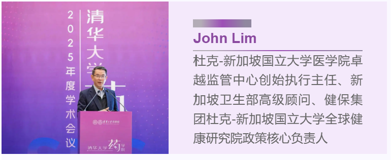 來自杜克-新加坡國立大學(xué)醫(yī)學(xué)院卓越監(jiān)管中心的John Lim教授從新加坡國情出發(fā),介紹其衛(wèi)生監(jiān)管架構(gòu),包括三方核心主體及協(xié)作模式,分享基于創(chuàng)新藥風(fēng)險監(jiān)管等具體舉措,強調(diào)政企學(xué)協(xié)作的重要性,并表達了未來與中國相關(guān)機構(gòu)的合作的愿景。