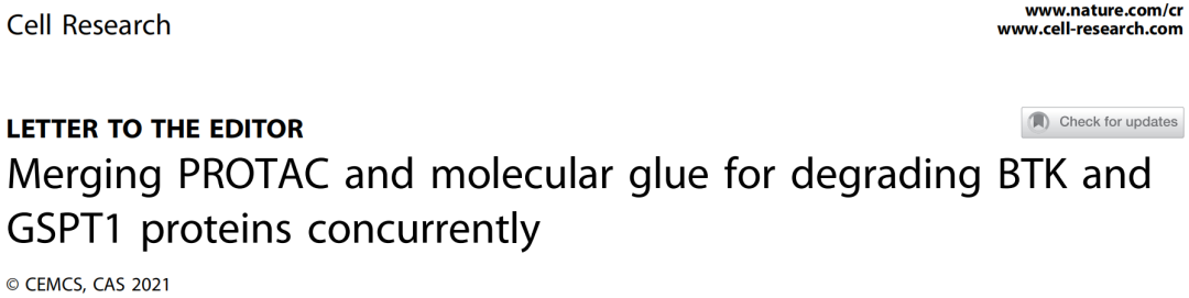 2021年8月20日,清華大學藥學院饒燏團隊在《Cell Research》雜志上發(fā)表了題為“Merging PROTAC and molecular glue for degrading BTK and GSPT1 proteins concurrently”的研究論文,該工作報道了一類新型的雙機制降解劑,該降解劑既能夠以PROTAC方式靶向BTK,同時也以分子膠的方式降解GSPT1,與單靶降解劑或抑制劑相比,這種雙機制降解劑實現(xiàn)了更高效的DLBCL和AML腫瘤細胞增殖抑制效果,為DLBCL和AML治療提供新型治療方案。