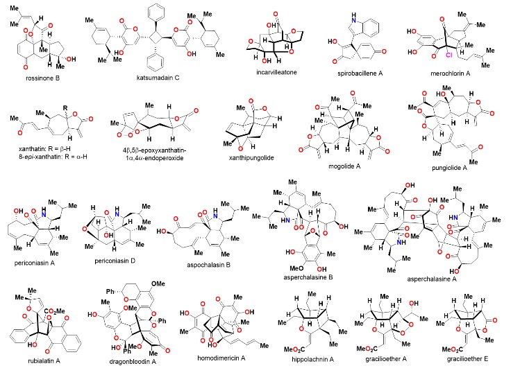 其中代表性工作包括蒼耳烷倍半萜(Angew. Chem. Int. Ed. 2012, 51, 6984; Angew. Chem. Int. Ed. 2014, 53, 14494; Angew. Chem. Int. Ed. 2017, 56, 16323; Chem. Asian J. 2019, 14, 1888;Angew. Chem. Int. Ed. 2021, 60, 4221)、細(xì)胞松弛素(Angew. Chem. Int. Ed. 2016, 55, 6992; Angew. Chem. Int. Ed. 2018, 57, 14216; Org. Lett. 2019, 21, 1794)、扁板海綿聚酮(J. Am. Chem. Soc. 2018, 140, 1937;Org. Biomol. Chem. 2020, 18, 9371)以及百部生物堿(Chin. Chem. Lett. 2013, 24, 953; Angew. Chem. Int. Ed. 2021, 60, 14545)等天然產(chǎn)物的集群式合成。