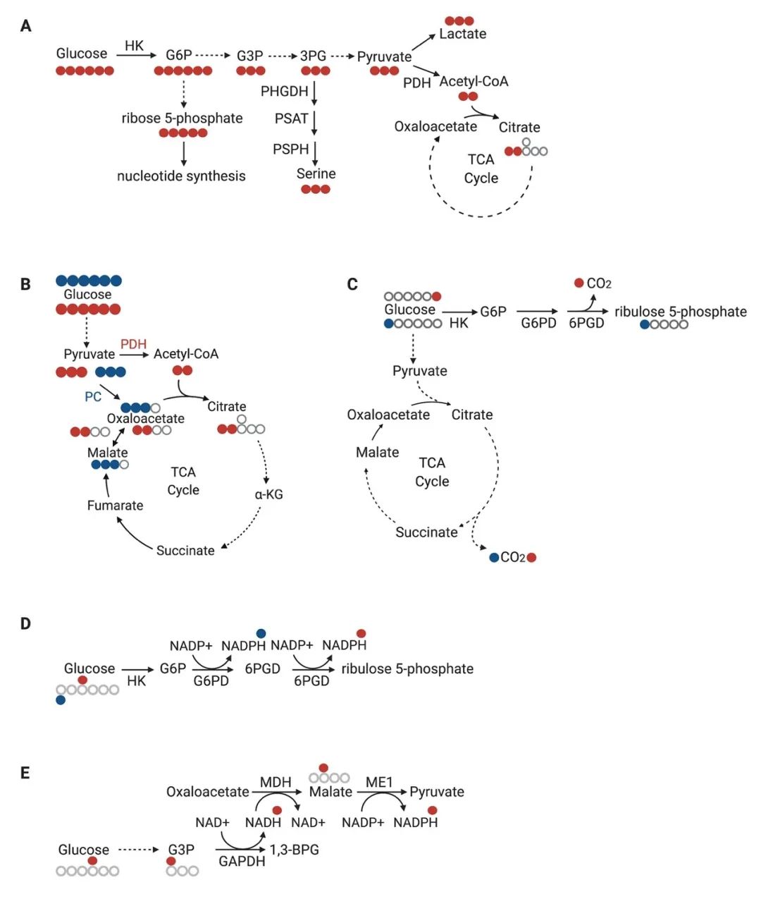 圖2. 穩(wěn)定同位素標記示蹤劑標記葡萄糖代謝通路(節(jié)選部分)