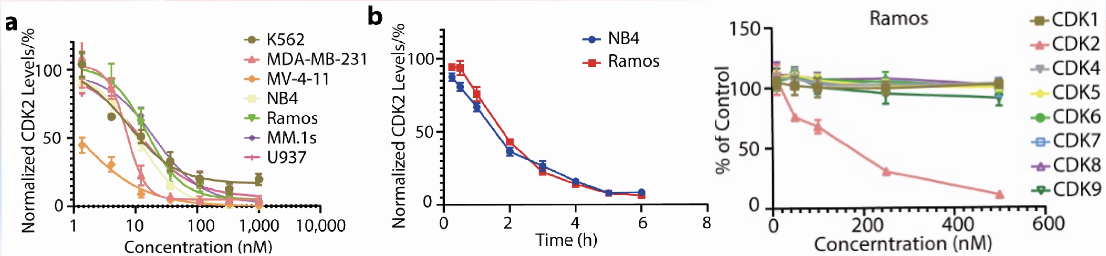 圖3. CPS2在多種細(xì)胞系內(nèi)誘導(dǎo)CDK2的高效選擇性降解