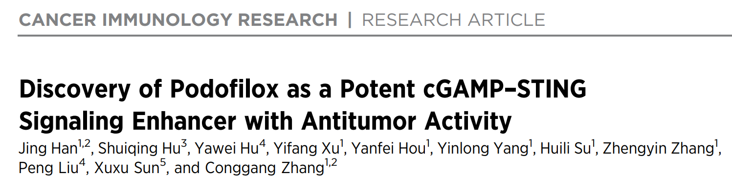 原文鏈接:https://aacrjournals.org/cancerimmunolres/article/doi/10.1158/2326-6066.CIR-22-0483/718784/Discovery-of-podofilox-as-a-potent-cGAMP-STING