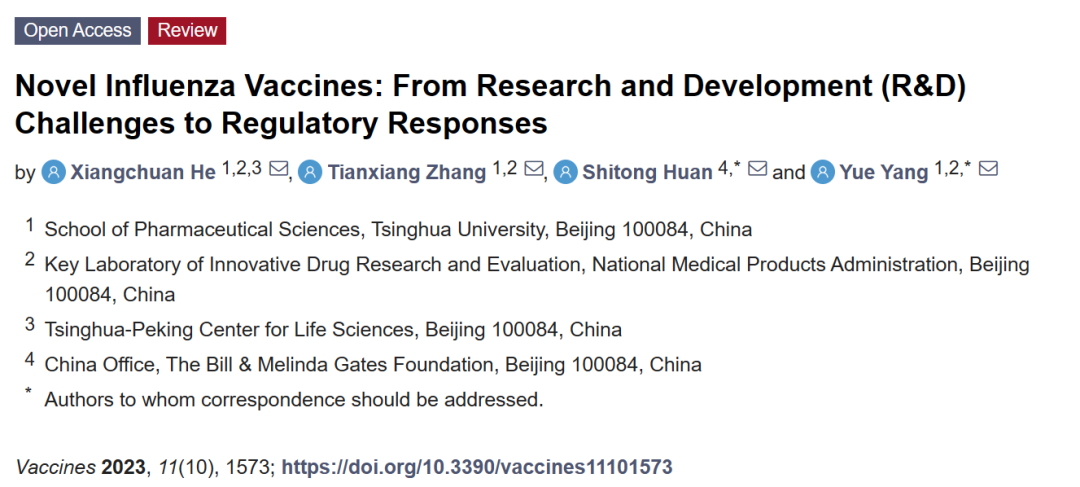 近日,清華大學(xué)藥學(xué)院楊悅課題組與比爾及梅琳達(dá)·蓋茨基金會(huì)合作, 在疫苗領(lǐng)域知名期刊Vaccines在線發(fā)表了題為《新型流感疫苗:研發(fā)挑戰(zhàn)與監(jiān)管應(yīng)對(duì)》(Novel Influenza Vaccines: From Research and Development (R&D) Challenges to Regulatory Responses)的綜述文章。