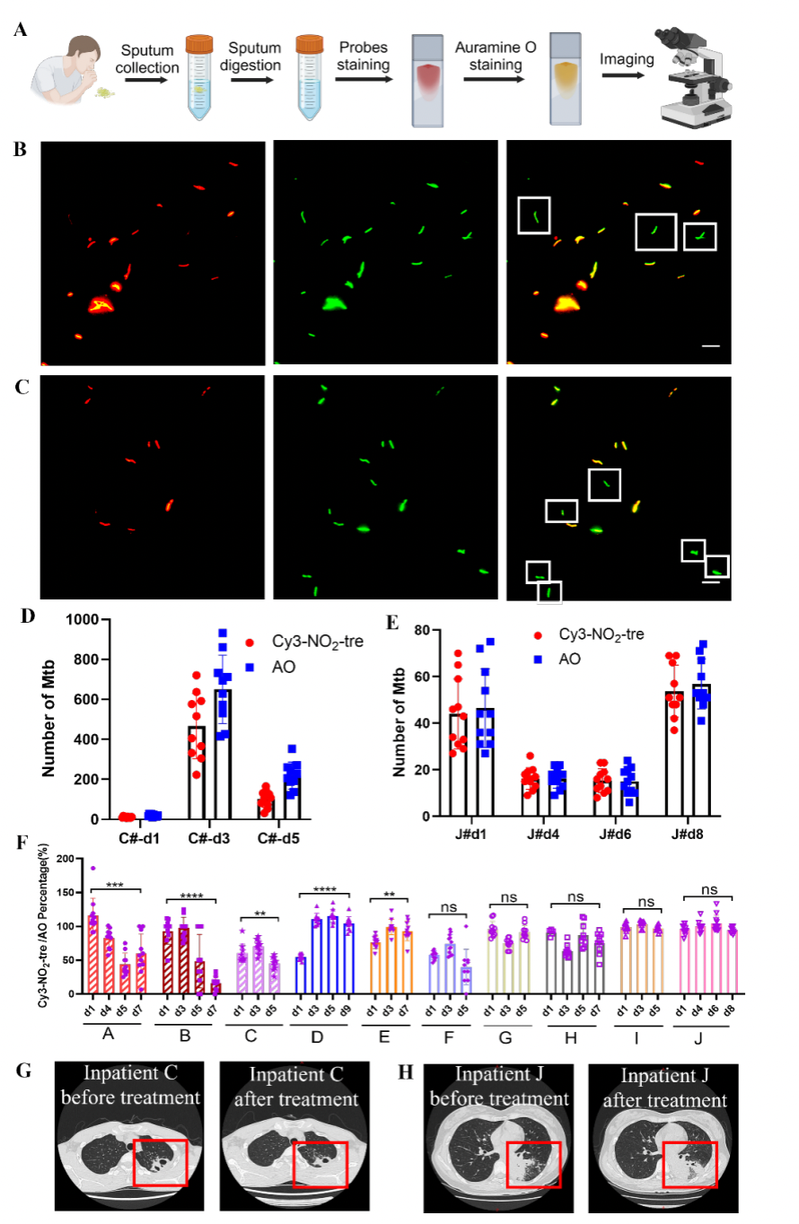圖5. Cy3-NO2-tre用于早期評(píng)價(jià)結(jié)核病患者的抗結(jié)核治療效果。