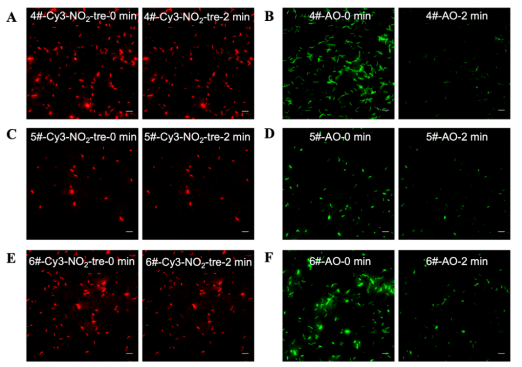 圖4. Cy3-NO2-tre在臨床痰液樣本上的熒光抗淬滅效果強(qiáng)于AO。