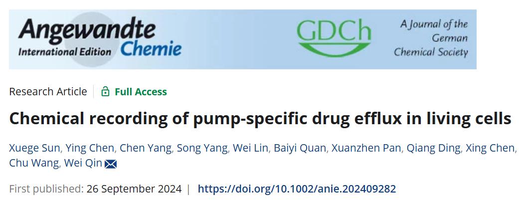 2024年9月26日,清華大學(xué)藥學(xué)院秦為課題組、北京大學(xué)化學(xué)與分子工程學(xué)院王初課題組和陳興課題組聯(lián)合在Angewandte Chemie International Edition雜志上發(fā)表了題為 “Chemical recording of pump-specific drug efflux in living cells” 的研究論文。該研究開發(fā)了一種化學(xué)生物學(xué)新技術(shù)BRIEF,利用化學(xué)探針在活細(xì)胞中記錄特定外排泵的藥物外排過程,為理解藥物耐藥性提供了新的視角。