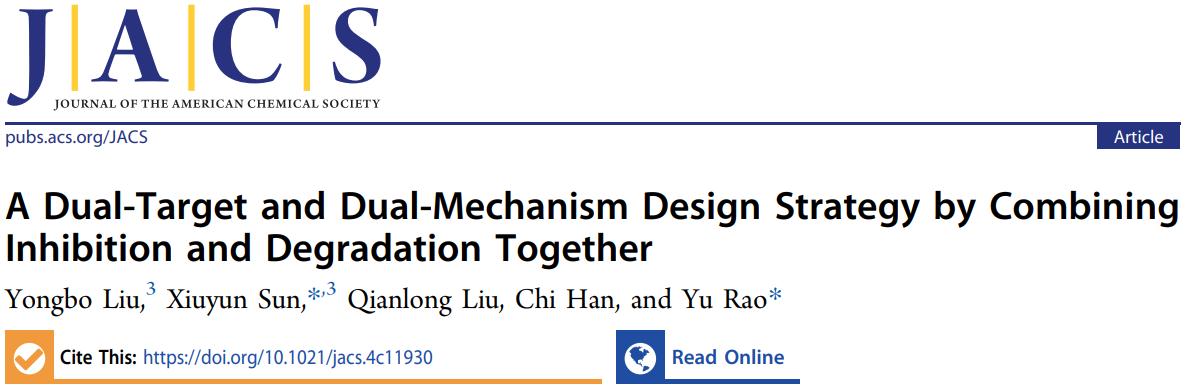 2024年12月3日,清華大學(xué)藥學(xué)院饒燏團(tuán)隊(duì)于《Journal of the American Chemical Society》(美國(guó)化學(xué)會(huì)志)上在線(xiàn)發(fā)表了題為“A dual-target and dual-mechanism design strategy by combining inhibition and degradation together”的研究文章。在這項(xiàng)研究中,作者開(kāi)發(fā)了一個(gè)雙靶雙機(jī)制小分子YB-3-17,它能夠高效、選擇性地抑制mTOR同時(shí)降解GSPT1,對(duì)腫瘤細(xì)胞增值抑制活性?xún)?yōu)于單一治療及其聯(lián)合使用。此外,YB-3-17能夠在小鼠模型中安全有效地抑制腫瘤的生長(zhǎng)。作者首次將mTOR抑制與GSPT1蛋白降解結(jié)合起來(lái),展示了將小分子抑制劑和降解劑特性成功整合到單一分子中的概念性與可行性,“一石二鳥(niǎo)”的策略有望達(dá)到“事半功倍”的效果,為膠質(zhì)瘤的精準(zhǔn)治療提供了一個(gè)有前景的方向。