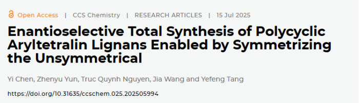 近日,清華大學(xué)藥學(xué)院唐葉峰課題組在中國化學(xué)會(huì)旗艦期刊CCS Chemistry上發(fā)表了題為“對(duì)稱性驅(qū)動(dòng)多環(huán)芳基四氫萘型木質(zhì)素的對(duì)映選擇性全合成”(Enantioselective Total Synthesis of Polycyclic Aryltetralin Lignans Enabled by Symmetrizing the Unsymmetrical)的研究論文,報(bào)道了該團(tuán)隊(duì)在活性天然產(chǎn)物全合成領(lǐng)域取得的最新進(jìn)展。