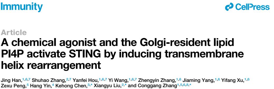 2. Luteijn RD, et al. The activation of the adaptor protein STING depends on its interactions with the phospholipid PI4P. Sci Signal. 2024;17(827):eade3643.