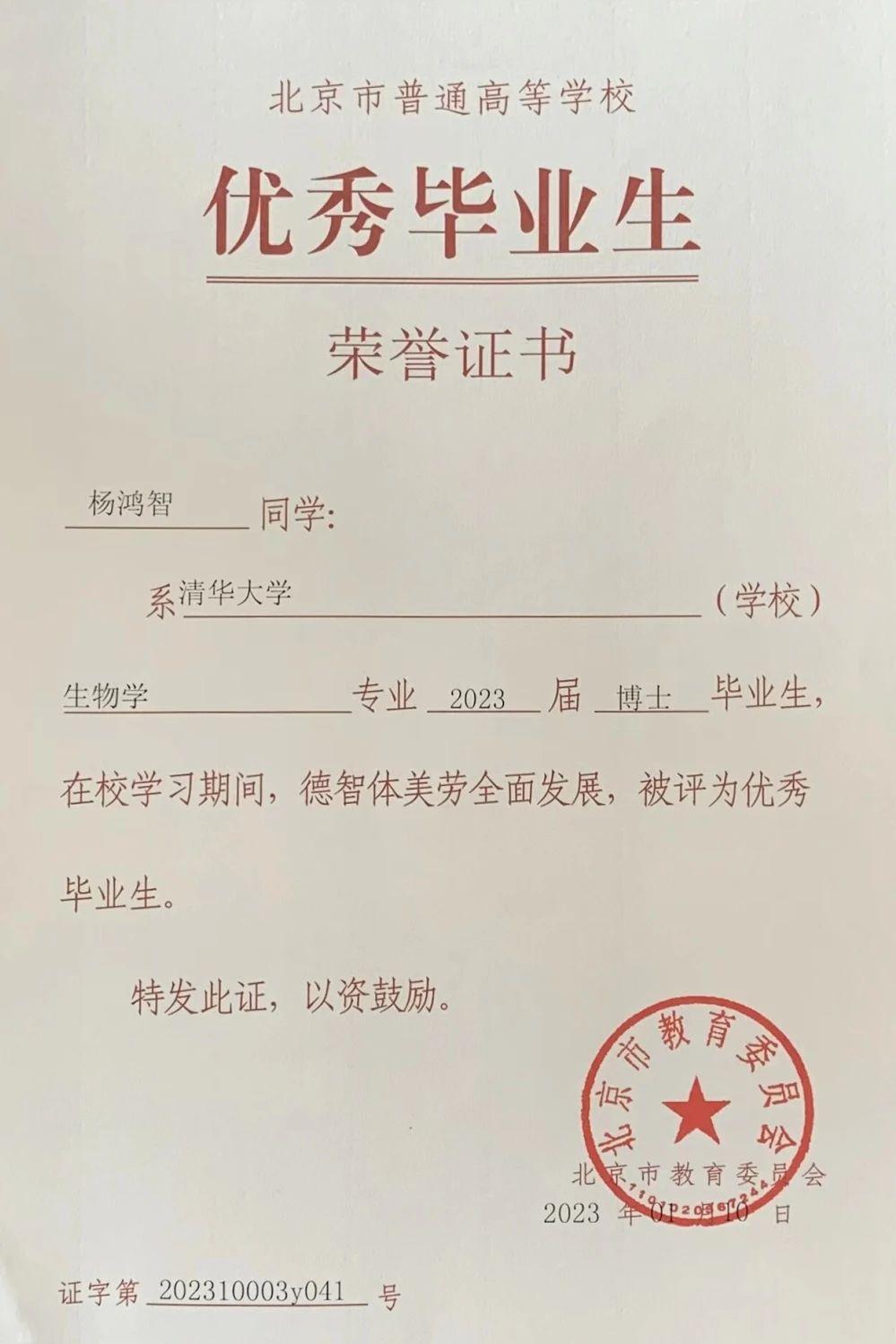 2023年博士畢業(yè)生楊鴻智