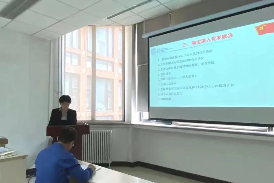 兩位入黨介紹人劉清飛、陳立功詳細(xì)介紹了商世瑛同志在考察期間的具體表現(xiàn),認(rèn)為其已經(jīng)具備了黨員的條件,同意推薦其加入中國共產(chǎn)黨。支部委員陳立功代表支委會匯報(bào)了對商世瑛同志的考察和審查情況,經(jīng)過全體黨員充分討論、現(xiàn)場票決,一致同意商世瑛同志為預(yù)備黨員。