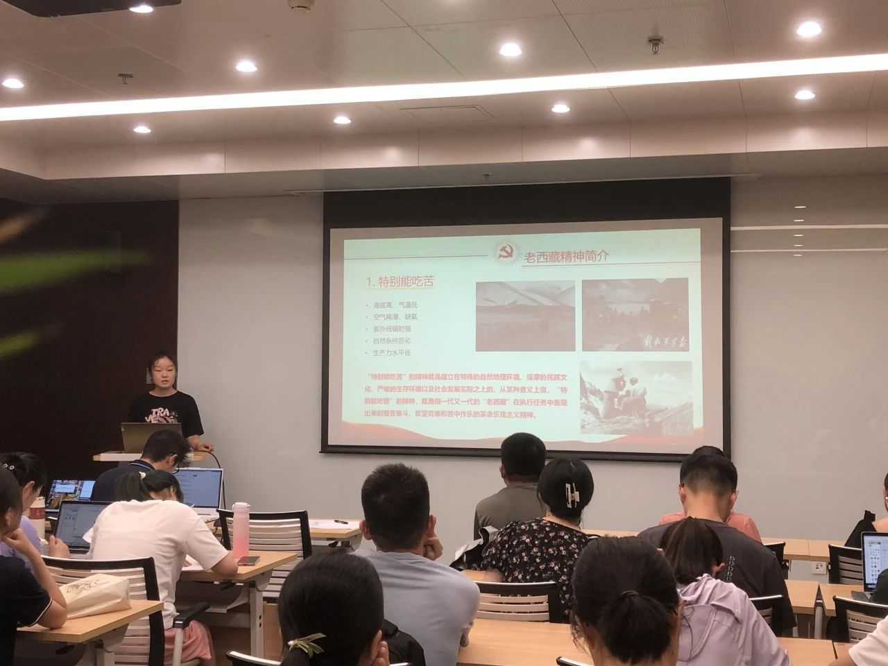 為堅(jiān)定馬克思主義信仰和共產(chǎn)主義理想,堅(jiān)定中國(guó)特色社會(huì)主義信念,醫(yī)學(xué)院基礎(chǔ)博四黨支部的黨支書夏雙雙同志分享了“老西藏”精神的歷史背景、時(shí)代內(nèi)涵和創(chuàng)造成就。面對(duì)西藏獨(dú)特的氣候地理?xiàng)l件和嚴(yán)峻的生存環(huán)境,一代又一代的“老西藏”人發(fā)展出了“特別能吃苦、特別能戰(zhàn)斗、特別能忍耐、特別能團(tuán)結(jié)、特別能奉獻(xiàn)”的老西藏精神。習(xí)近平總書記在中央第七次西藏工作座談會(huì)上指出,廣大干部特別是西藏干部要發(fā)揚(yáng)“老西藏精神”,缺氧不缺精神、艱苦不怕吃苦、海拔高境界更高,在工作中不斷增強(qiáng)責(zé)任感、使命感,增強(qiáng)能力、錘煉作風(fēng)。