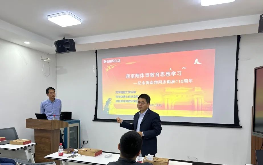 為紀(jì)念蔣南翔同志誕辰110周年,藥學(xué)院教工黨支部、博士后黨支部、體育部球類教研室黨支部以"蔣南翔體育教育思想"為主題,組織開展聯(lián)合黨建活動,深入學(xué)習(xí)和理解蔣南翔同志的教育思想和辦學(xué)理念。
