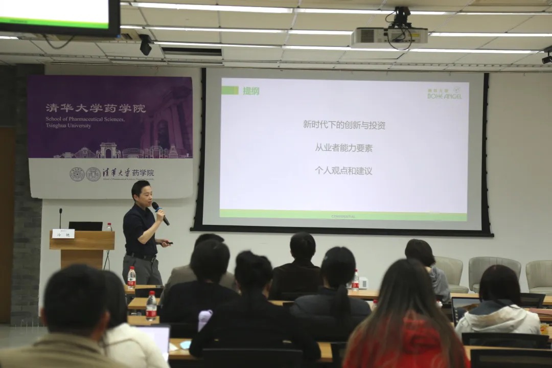 冷艷老師則以“生物醫(yī)藥投資的新時(shí)代戰(zhàn)略和洞見(jiàn)”為主題,詳細(xì)闡述了中國(guó)醫(yī)藥投融資的發(fā)展簡(jiǎn)史以及創(chuàng)新藥領(lǐng)域的工業(yè)革命。他不僅深入剖析了行業(yè)現(xiàn)狀,更從自身豐富的投資經(jīng)驗(yàn)出發(fā),為大家分享了作為投資人和創(chuàng)業(yè)者應(yīng)當(dāng)具備的素質(zhì)與能力。兩位嘉賓的演講都為有志于在生物醫(yī)藥投資領(lǐng)域發(fā)展的同學(xué)們提供了寶貴的經(jīng)驗(yàn)借鑒,也讓大家對(duì)這一行業(yè)的運(yùn)作機(jī)制有了更為清晰的認(rèn)識(shí)。